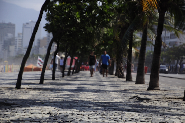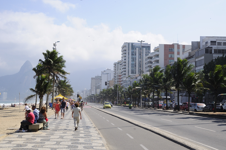 Despues de la cilcovía sigue una calle paralela a la playa en la que aparte de carros como en cuelquier otra avenida importante, se ven los nuevos millonarios que pasean descuidados y con afán en sus nuevos ferraris último modelo. Digo descuidados porque al parecer se les olvidan las llaves de la oficina, por lo tanto deben volver a Leblon, pero por alguna razon una vez estan en Copacabana se acuerdan de otra cosa que dejaron en la casa, obligandoles a volver nuevamente, y así sucesivamente hasta que se les acaba la gasolina o se aburren de que la puesta del sol no permita a los turistas, ciclistas y demás personas que estan en la zona, poder admirar sus nuevas adquisiciones.