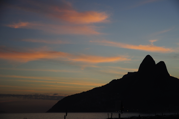 Al otro extremo de la playa en Ipanema, se puede montar uno a una piedra que queda en el parque de la garota de Ipanema (creo que fue nombrado así por la famosa canción) donde se puede ver toda la playa hasta los dois irmaos, y cómo en esta época anochece rápido, se ve la puesta del sol antes de salir a comer.