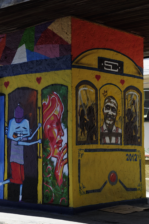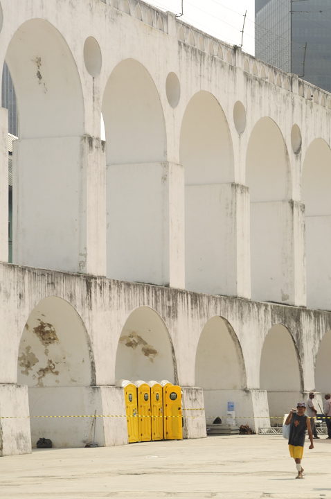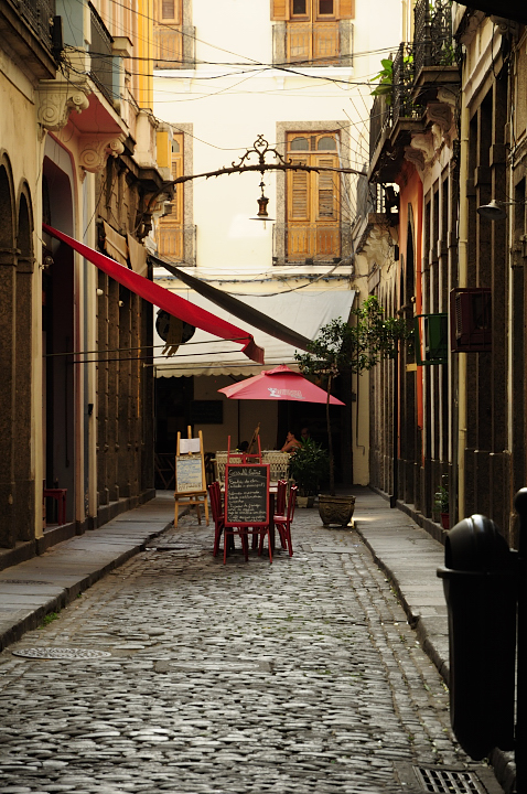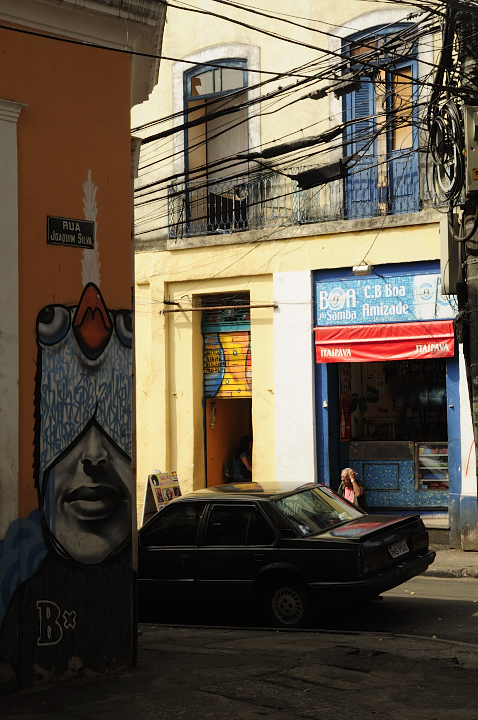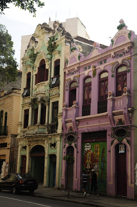 Si se baja Santa Teresa se llega al centro mismo, que para ser una ciudad con tantos habitantes es bastante pequeño, pero no por eso menos bueno. Tiene sus edificios modernos, al lado de edificios viejos bastante bonitos y de palacios y plazas imperiales (acordarse que cuando napoleon invadió a españa y portugal y los ingleses tuvieron a lisboa como base de operaciones para contenerlo, el rey de portugal y hasta entonces brasil, decidió irse a Rio a reinar y desde allí gobernó unos cuantos años, es por esto que hay plazas imperiales y palacios imperiales en comparación con nuestro palacios de virreyes). En la plaza más grande, con el muy poco evocador nombre de cinelandia, está un teatro muy grande y muy dorado, el museo de bellas artes y la biblioteca nacional. Mas atras se encontrará un ovni de concreto el que algún creativo decidió volver iglesia, perdon, peor aún, catedral, que tiene más apariencia de ser un lugar de encuentro de la secta de los cientifistas o cienciologos que un templo católico, como se podrán imaginar, no me tomé el esfuerzo de entrar. Si se sigue mas adentro del centro hacia uruguaiana se enontrará mas casonas viejas semi derruidas de estilo portugues, unos pasajes peatonales con casonas viejas reformadas y al lado del puerto una estacion de ferri para ir a niteroi y el museo de arte contemporaneo. Para mi esta parte desordenada, ruidosa y vieja fue la parte del centro que mas me gustó. Vale bastante la pena un paseito por el centro y aunque me dieron advertencias de seguridad, que como es obvio no tomé en cuenta, nada me pasó.