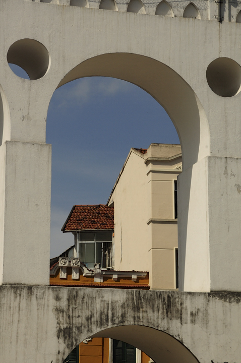 El barrio Gloria que es el primero despues de Flamengo no hay nada especial, solo que de allí se puede subir a Santa Teresa, pero es mejor seguir hasta Lapa, que es el barrio bohemio de Rio, donde se encontrarán casas viejas semi destruídas, casas viejas reformadas, todas con arquitectura portuguesa y que contienen, bares, hostales, tienditas y mucho ambiente para hacer este barrio uno de los mejores de Rio, tiene además un acueducto tipo romano para tomarse fotos y debajo tiene el circo voador, que me imagino incluye al gato voador como una de sus estrellas. Es del acueducto que se entra al barrio y en esa misma calle se encuentran unas escaleras muy famosas hechas con baldosa por un artista chileno que todavía se encuentra trabajando en ellas, que a pesar de ser bastante antipático, tolera bastante bien a los turistas que le toman fotos descaradamente, igual, al final los invita a que entren en su taller, que queda en las mismas escaleras, para que le compren baldosas confeccionadas por él. Arriba de la escalera está la puerta de entrada al barrio Santa Teresa que es el último morro, teniendo una vista privilegiada del centro desde un edificio medio moderno en ruinas y es al la vez un museo de arte contemporaneo, creo... estaba cerrado cuando fuí. El barrio está compuesto por unas casas viejongas en buen estado, todas mas o menos de la misma época, dandole una uniformidad al barrio que rara vez se ve en alguna ciudad y además se pueden ver unas dos favelas que son para cualquiera que halla visitado a medellín, exactamente lo mismo que una comuna.