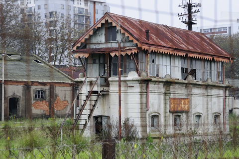 Estación principal de trenes caída en desgracia... al lado hay un edificio moderno, minusculo comparado con la original.. en la foto el cuarto de contról.