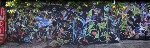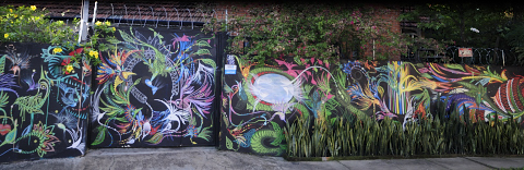 Alambre de púas, puerta cerrada, muralla, en fin, es Sao Paulo pero en Vila Madelena lo saben decorar