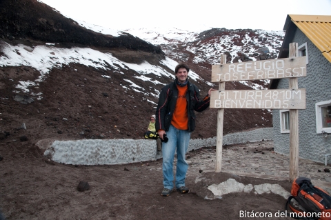 Viajando a unos vertiginosos 60km/h en bajada y con un frio realmente insoportable llegué al mismo sitio donde ya había llegado hace 3 o 4 años y donde se toma una camioneta para subir el nevado. Como buena noticia: no me tumbaron, el precio seguía siendo el mismo de esa vez.
