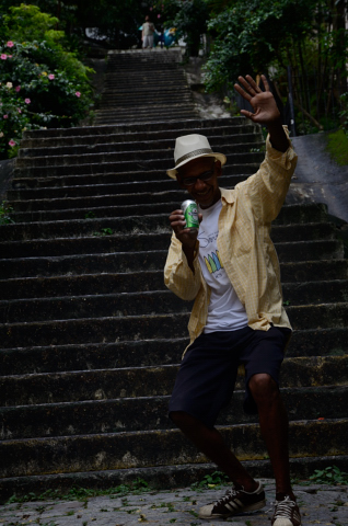 Escaleras a candido mendes con brasileiro posando