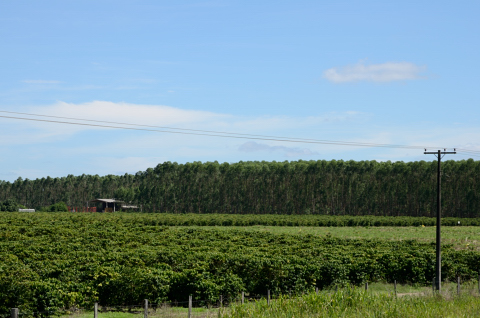 Lo que se ve en la carretera: café (de una raza diferente a la arabiga) y eucaliptos maderables