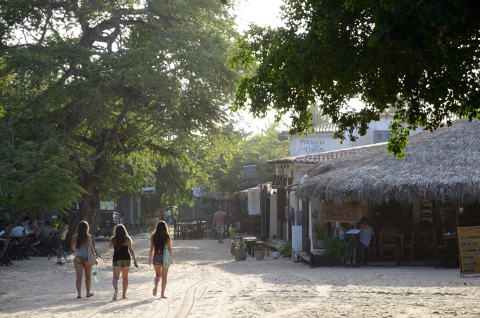 En Jeri todas las calles estan en arena, solo vive del turismo y su ambiente es bueno porque es muy dificil llegar a ella, así que filtra a los turistas, no se encuentra casi turismo familiar ni parejas en lunas de miel; lo que mas tiene son mochileros y kitesurfers ya que el pueblo es una paraiso para ellos devido a su constante viento.