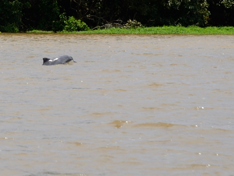 El delfín y los otros animales se ven desde el bote sin ningún problema.