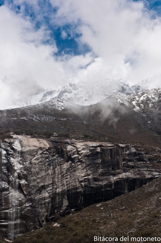 La idea era ir a la parón primero y visitar las llanganuco antes de que fueran las 2 de la tarde, hora en que las nubes tapan todo y empieza a llover. Después de dos horas de camino, devolviéndome lo que hice ayer, llegué a Caraz; debo agregar que en el paisaje aparecieron un montón de nevados que por el clima de ayer no los había visto y son los que le ponen el nombre a la cordillera blanca. Son muchos y son lo que hace que valga la pena ir hasta Huaraz, que ya viéndola de día es aún más fea que la zona de las putas en Rionegro agregándole mucho más frio, lluvia por montones y pantano a dos manos, pero ubicada muy a pesar de ella en un valle con unos paisajes que uno se los imagina en suiza y no por estos lados.