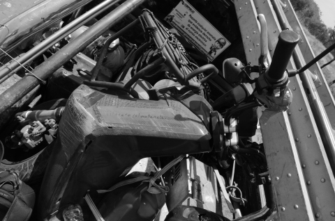 La carretera esta en un estado lamentable, huecos sobre los huecos; todos los carros van en zig zag así la carretera sea una linea recta; los hay de todos los tamaños, colores y sabores. Para aumentar la desracia hay personas que ganan la vida tapando eternamente el mismo hueco, o por lo menos pretendiendo que así lo hacen. Personajes en si, que demuestran que los huecos llevan tiempo y que tiempo estarán en el mismo sitio. La gasolina, en el pais de la gasolina, es dificil de conseguir y la vida para el motoneto siempre es mas fácil con su tanquecito extra, hay veces lo llenan, hay veces que no, la cosa wrrrraaaaaaa... runnnnn,runnnn....