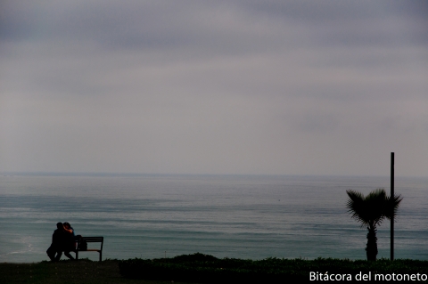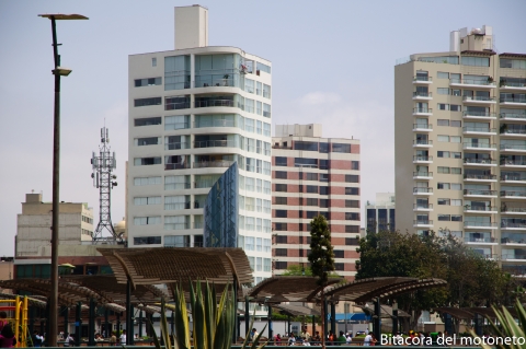Tiene en todo el borde del “acantilado” un parque que lo sigue durante todo el recorrido, muy utilizado por los limeños sea para practicar deporte o para reunirse y pasar el tiempo; abajo esta la playa que nadie usa salvo para surfear (no ví a ninguna flaca – así les dicen acá – asoleándose). Bastante envidia da; en Colombia no existe nada parecido a esto.