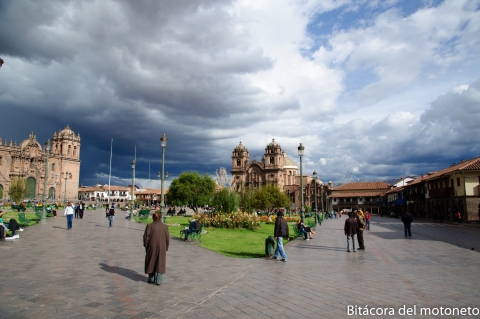 Rapidito hice una vuelta turística de todo Cuzco, que es bastante pequeño, pero muy bonito. Todo es medio colonial con las bases hechas con las piedras de los templos indios; serían edificios muy fotogénicos si no hubiese taxis Daewoo Tico por todo lado (son de hecho narco-ticos) que no dejan tomar fotos de edificios enteros. Como cosa rara, lo persiguen a uno encargados de atraer clientes para los restaurantes y montones de masajistas que una vez volví al hotel pregunté y por solo la reacción de la recepcionista (que creyó que me iba a hacer un masaje en el hotel) quedó clarificada la duda y obviamente son prostitutas. Lo raro es que venden su oficio con tarjetas turísticas y muy parecido a como ofrecen el peinado y la Shakira en la costa.