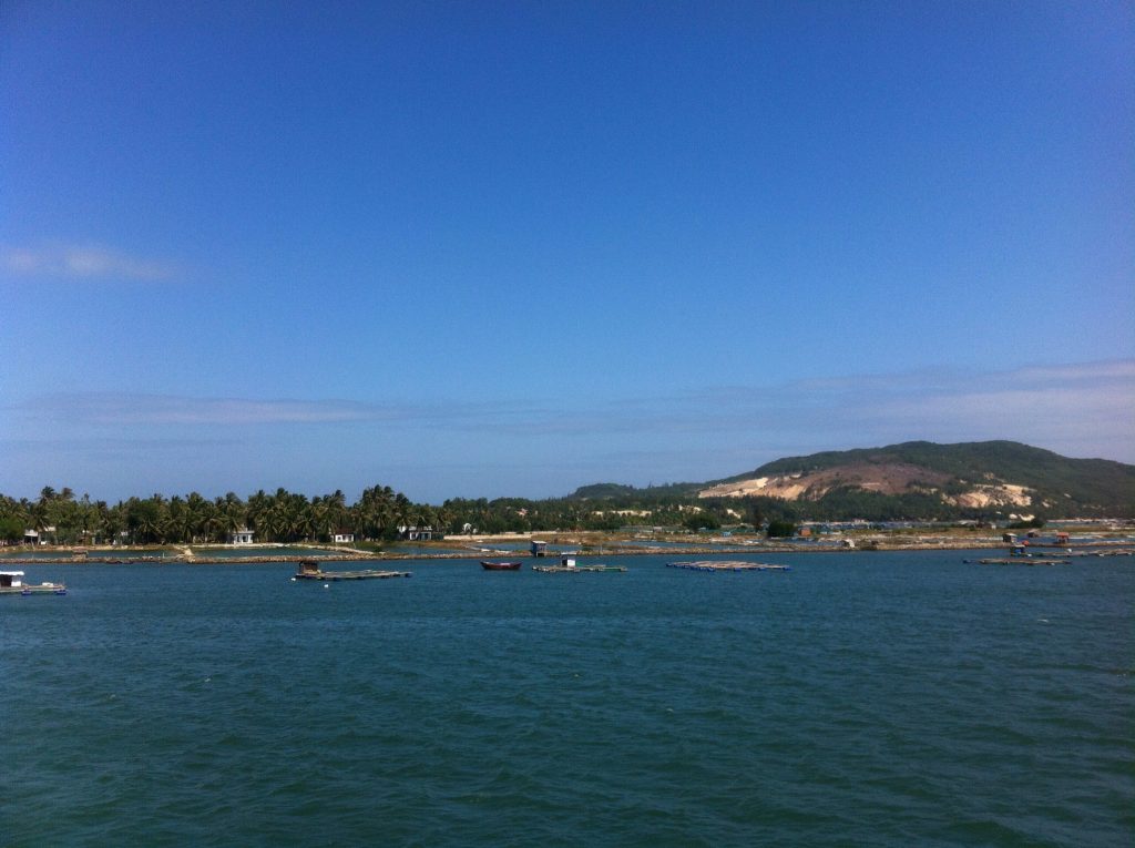 Domingo, 06 mar 2016Nha Trang, ciudad super turística para rusos (los letreros estan en rusos. los menus tambien y para rematar los meseros tambien lo hablan, es más, por acá no hay mas thank yous pero spaziba bolshois es lo que se oye; además, tambien es una ciudad fiestera. Se compone de una ciudad ruidosa llena de bares, hoteles al frente del mar y una playa bonita, pero para ser sinceros, nada especial. No me quise quedar, así en el hostal dieran cerveza gratis de 5 a 6. Los otros turistas son gringos o ingleses y ellos normalmente andan en grupos. Son queridos pero por alguna razón el motoneto no pega muy bien con ese tipo de paseos. En fin, decidí seguir mi camino pero no había cuando que pudiera llegar hasta Hoi An, mi destino. Así que por consejo de los locales (el mecánico que me cambió en aceite el día anterior en 2 minutos, bueno, su hijo, y las chicas supersimpáticas del hostal) emprendí mi ruta hacia Quy Nhon; una ciudad que no es turística y que en realidad no vale la pena. Cómo salí temprano, llegué temprano, eran solo 220km. A las tres de la tarde entré al hotelito, bastante mediocre pero baratisimo y a partir de esa hora comenzaba mi nueva misión: almorzar. Por más que caminé, la ciudad resultó ser super larga, no pude encontrar algun sitio que me generara confianza. En fin, el centro quedaba a 5 km y los caminé todos en busqueda de la comida salvadora, en ese tiempo sacrifiqué una bahía cercana que había visto a la entrada que era bonitisima.