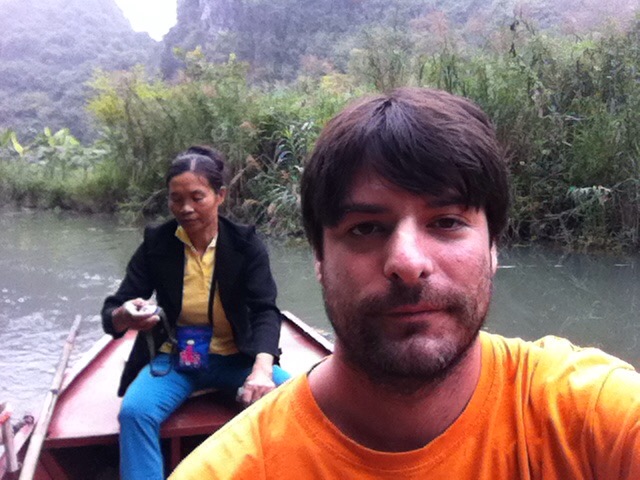 Viernes, 25 mar 2016Sin perder tiempo, afanado de llegar antes que los vietnamitas, volé en mi escualida rumbo a Trang An, el lugar donde salen los botes. Siendo de los primeros en llegar, me recibió la sorpresa que el tiquete solo era válido por un día, sin más, debía comprar otro tiquete... ni por el putas les dije, igual no me entendieron. Muerto de rabia me fui de vuelta para Tam Coc y de allí para una pagoda sin gracia. Me habian contado una parejita de franceses que se está quedando en el mismo lugar que yo, que seguiendo la via de la pagoda podía encontrar más canoas para hacer el paseo, esas sí, menos organizadas. No la encontré.