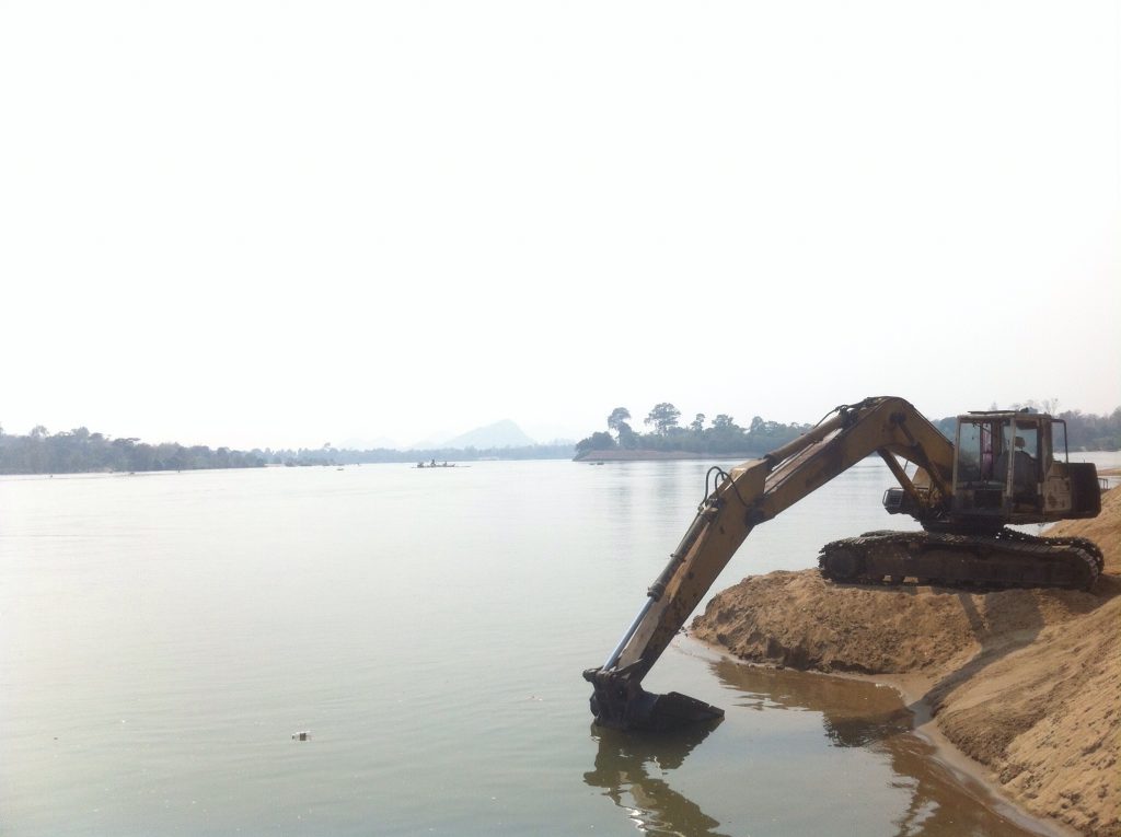 Como no hay foto de los delfines.. una retroescavadora introvertida con el Mekong de fondo , como para poner algo