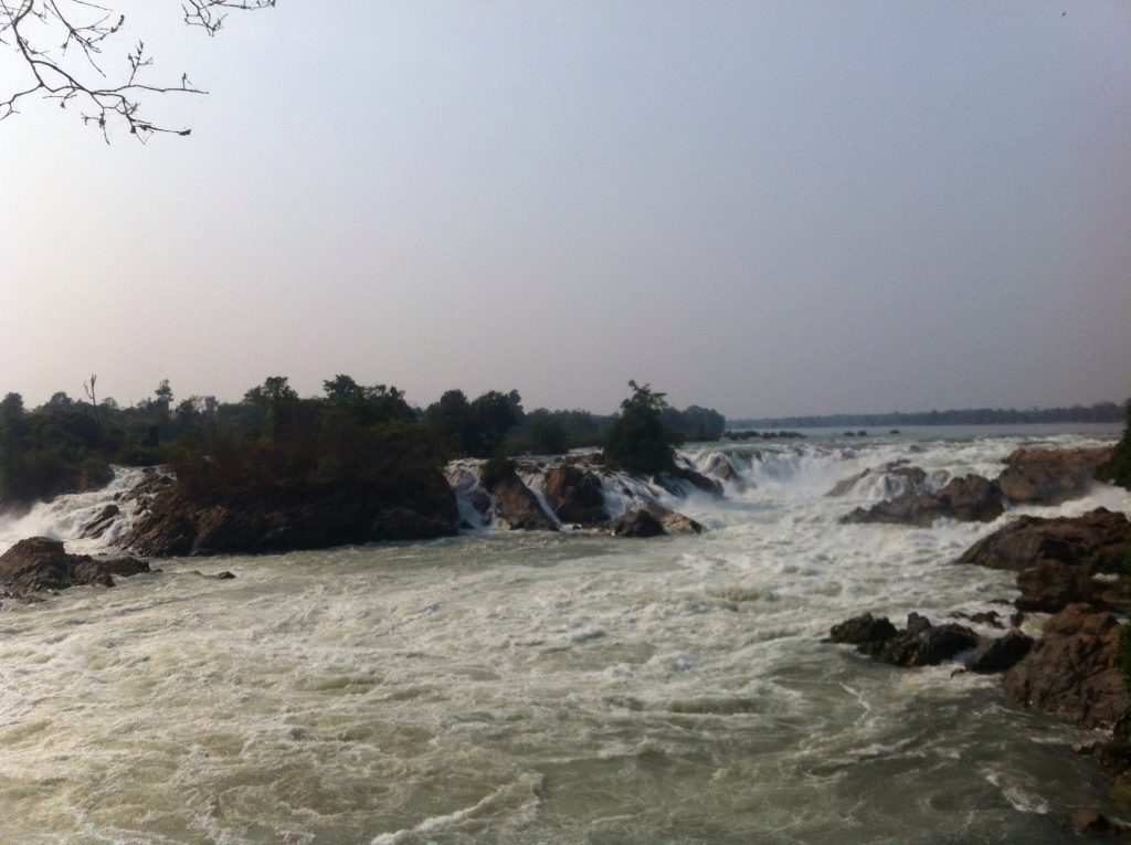 Pasada otra remada larga – bastante dura – vuelve uno a llegar a otra cascada donde el Mekong en toda su extensión cae varios metros. No se imaginen las cataratas del Iguazú, es mas bien como el salto de Rin en Schaffhausen, solo que este es más amplio y uno lo puede admirar desde un punto más lejano. Las fotos, como lo pueden apreciar, no son para nada espectaculares; fueron tomadas con el celular – uno bastante mediocre. En Vientiane, mi linda cámara, la cual sigue viva, fue testigo, al igual que el dueño, como el apreciado y querido lente de todos los paseos, el super 16-85, murió. Simplemente se reventó por dentro, por cuenta de tantos zoomes hechos con ceniza volcánica que ingresó al lente en el lago Espejo en la Patagonia argentina. Nada que hacer, el lente no tiene arreglo. Lo cruel de esto radica en que en Hong Kong me ofrecieron este lente por una cifra ridículamente barata pero aunque yo sabía el que el mio estaba en malas condiciones, por cuenta de anti consumismo no lo compré. Ahora me arrepiento con verdadera amargura.
