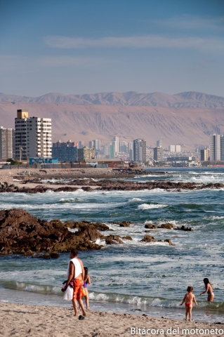 Playa Iquique, agua helada, corriente hacia mar adentro pero la gente feliz