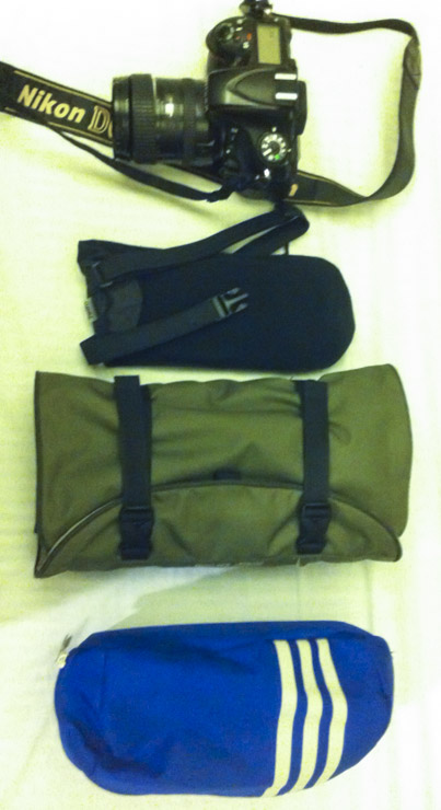 De última, metidita a la brava entre todo, la camara que, como pesa 2 kilos, cuando camino es mejor tenerla colgada al hombro.