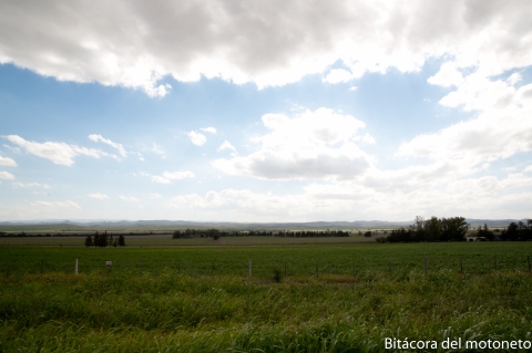 El campo cercano a Córdoba está lleno de cultivos gigantescos de Soja, o como decimos nosotros: soya; apenas están empezando a crecer, se debe tratar de coincidir con las plantas ya crecidas si se quiere apreciar la campiña cordobesa en todo su esplendor, pero igual en el estado en que la encontré me pareció bien bonita.