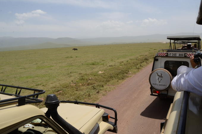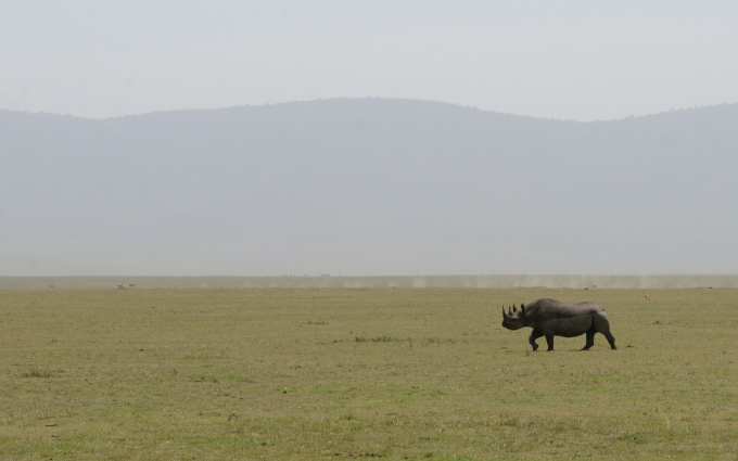 Volvemos entonces al Ngorongoro y su rinoceronte negro. Pues bien, cómo cada parque tiene su animal famoso y el del Ngorongoro es el rinoceronte y, de estos hay más bien pocos, el primer objetivo del guía experto y al mismo tiempo conductor del Land Rover, es encontrar a este animal (así los turistas solo quieran ver a los leones, o en el caso mío, las hienas). Entonces, en el primer mirador, donde se ve el cráter en toda su extensión, el guía muy contento nos señala un punto (un punto negro en nuestros ojos, un pixel en la cámara) y afirma orgulloso: – Ese es un rinoceronte negro; es bien posible que sea el único que vean en su vida.
