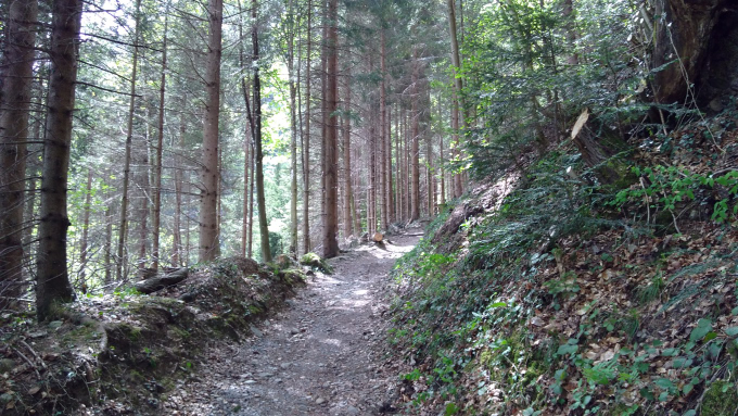 El camino, comienza siendo un sendero asfaltado. Apenas se adentra en el bosque, el asfalto desaparece y se transforma en un caminito de tierra que pasará por muchas etapas entre carreteable, caminable y en ciertas ocasiones, inexistente. Eso no presenta ningún problema; en caso de duda, voy para arriba y listo! – además, los senderos, así no estén presentes a simple vista, tienen señalización: cada vez que se llega a un cruce este tiene pintado en algún árbol un rombo amarillo, la señal a seguir –.