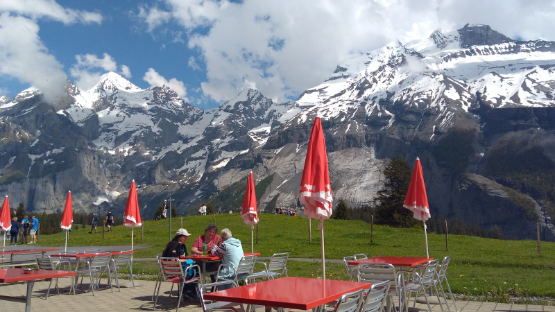 El pueblo es bien bonito; tienesus restaurantes con comida típica suiza, rösti y cualquier cosa con queso fundido, así que no es que uno se queje; la comida es rica y como todo por acá, cara.