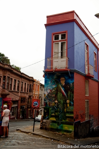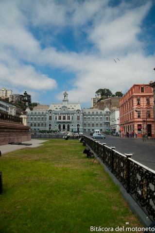 Habiendo renegado ya, empiezo: La vía es toda una doble calzada, aburrida como todas ellas, pero metiéndose entre unas montañitas medio desérticas pero con un frío bravo (había hasta neblina) y a los 120km de haber salido llegué a Guayaquil!, no es mentira; Valparaíso es igualitica a la ciudad ecuatoriana, edificios viejos decadentes, desorden absoluto en las calles (afortunadamente acá pitan poco) y hace frío, la ciudad para resumirlo es muy fea (al igual que la ecuatoriana) pero tiene todo lo que no tiene Santiago (vida, carácter, emoción …). La ciudad consiste en una zona plana con los edificios de los 40 al los 60 completamente decadentes y los cerros que (solo hay dos recomendados que de verdad es uno) se llaman concepción y alegre que tienen casas como las de caminito, sin ninguna gracia a no ser por los grafitis, el resto de los cerros son unas comunas o favelas bastante regulares y nada recomendadas para visitar.