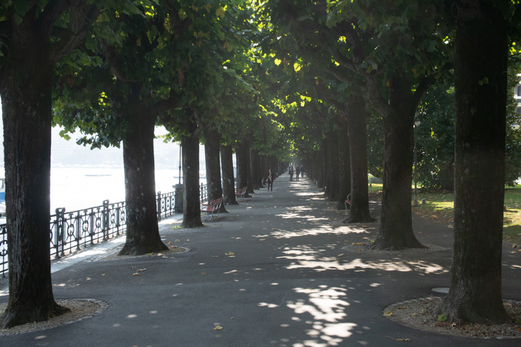 Es de notar que el pueblo es básicamente una costanera donde solo hay espacio para una vía bastante estrecha en la que los ferraris se las ven peludas para no rallarse con los muros y materas. Los restaurantes quedan a un lado de la calle y la terraza donde se encuentran los comenzales vuelan sobre el lago. El resto del pueblo, es una sola cuadra que se trepa por la montaña.