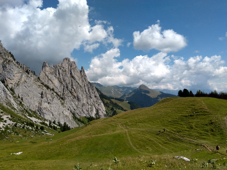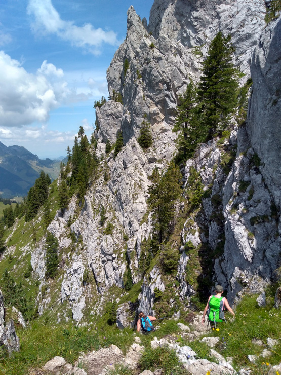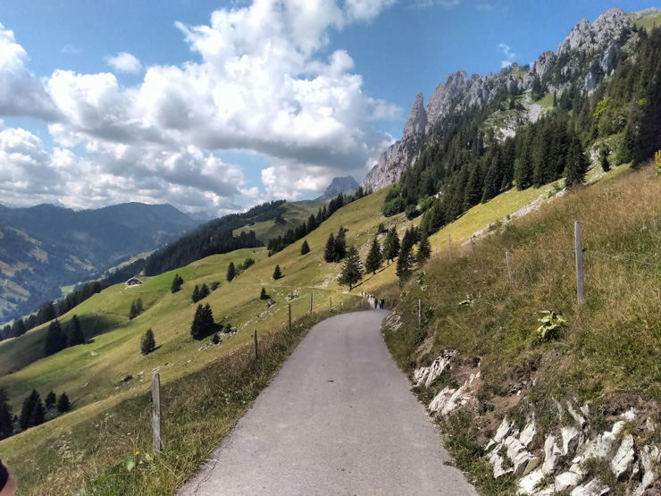 Viernes, 27 dic 2019Los Gastlosen son unas rocas muy parecidas a los Dolomitas, vistas desde el lago Misarino, o al Triglav esloveno. Lugares que aparecerán en este blog si dios nos da vida -- digo eso solo por decir --, en este caso, quien no depende de voluntades divinas, si me da la gana. (me va a dar, lo que no sé, es cuando). En fin, este lugar es básicamente una montaña que ha perdido su capa fértil y ahora es tan solo una roca. Es esta roca, la que llaman Gastlos, la que uno debe rodear. La parte sur queda en el cantón de Vaud en la Romandía, la oriental en Berna y la occidental en Friburgo. Es por esta razón que al viajar a esta zona cada dos pueblos cambia el idioma! El punto de partida y parte baja del Gastlos es el pueblo de Jaun qué, aunque queda en Guryere, habla alemán. Gruyere, es famosa por el queso de su mismo nombre y porque el creador de los títeres de Alien vivió allí. Dicho esto la caminada comienza loma arriba para llegar al camino que bordéa esta formación rocosa. El paseo en si dura unas 5 horas incluyendo paradas, cervezas y demás entretenimientos. El sendero es angosto, sube y baja y de vez en cuando puede llegar a ser peligroso debido a los riscos y empinado de ciertas subidas y bajadas. El día en que decidí hacerlo, resultó que media romandía había decidido también hacerlo. Vale la pana decir que los suizos franceses son más saludadores que los alemanes, así que entre dieciocho mil bon jourées, mercis y je vous en prie se va el camino. No es como para traer niños, si llegan a resbalar habrá que recogerlos montaña abajo; dicho esto, se ven bastantes familias. Es una montaña para hacer en verano y ojalá en un día de semana.